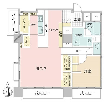 南・西の2面にバルコニーを備えた角住戸で、陽当たり・通風ともに良好。