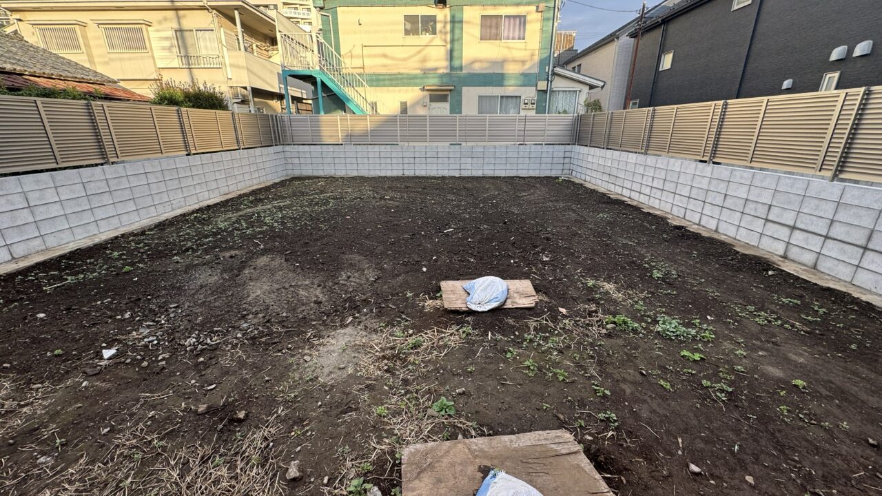 現地はすでにブロック・フェンスで整備済み。平坦地のため設計の自由度が高く、二世帯住宅や庭付き一戸建てにも最適です。