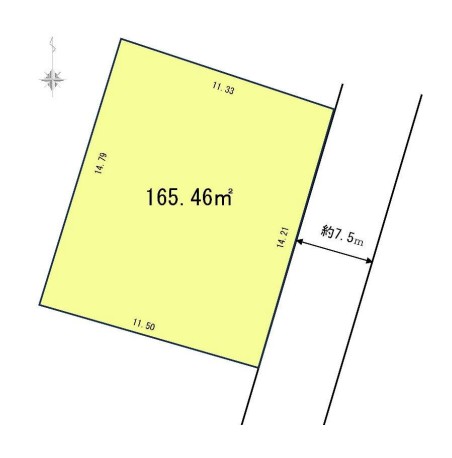 東側7.5m公道に約14m接道し、陽当たり・開放感ともに良好。