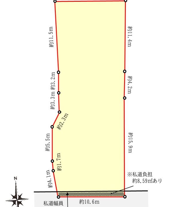 | その他法令上の制限 | 準防火地域 日影規制:3時間〜2時間(H=1.5m) | 接道状況 | 南側:私道 約4.0m |